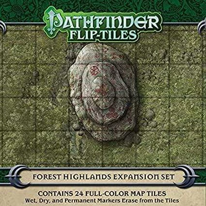 The more rugged the landscape, the more fearsome the monsters! Next time your players are ready to trudge their way up the hills in search for giants and dragons, they won’t have to wait for you to draw every tree and boulder. Pathfinder Flip-Tiles: Forest Highlands Expansion Set provides beautifully illustrated 6″¬†¬†6″ map tiles that can transform your forest into wooded crags filled with peril and adventure. Inside, you’ll find 24 richly crafted, double-sided map tiles. This expansion set, along with Pathfinder Flip-Tiles: Forest Starter Set, allows you to create endless tracts of hilly forests quickly! So stop your sketching and start your flipping today!