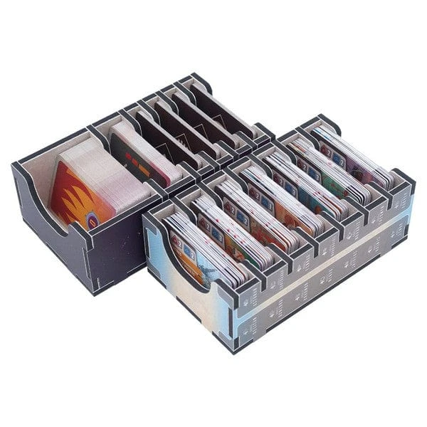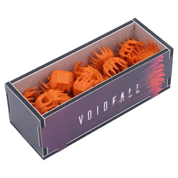 Official full colour insert compatible with Voidfall® Retail Edition. The design provides both efficient storage and improved game play. Many of the trays can be utilised during the game, and they greatly aid set-up and clear-away times. The boards and rulebooks act as a lid on top of the trays.