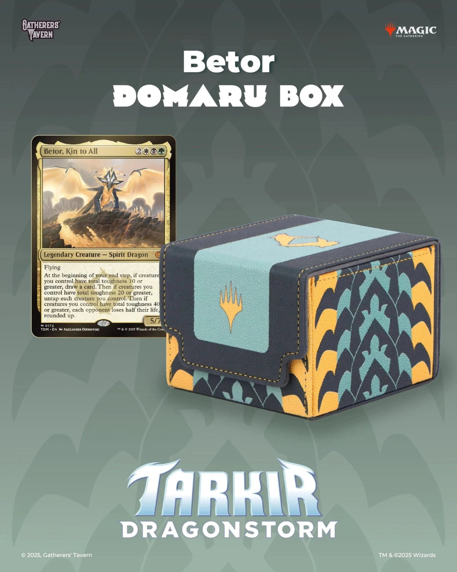 Tarkir: Dragonstorm Inspired Design: Featuring textured scale patterns of the five dragons, the Tarkir: Dragonstorm DOMARU Box is the perfect way to showcase your love for the set.