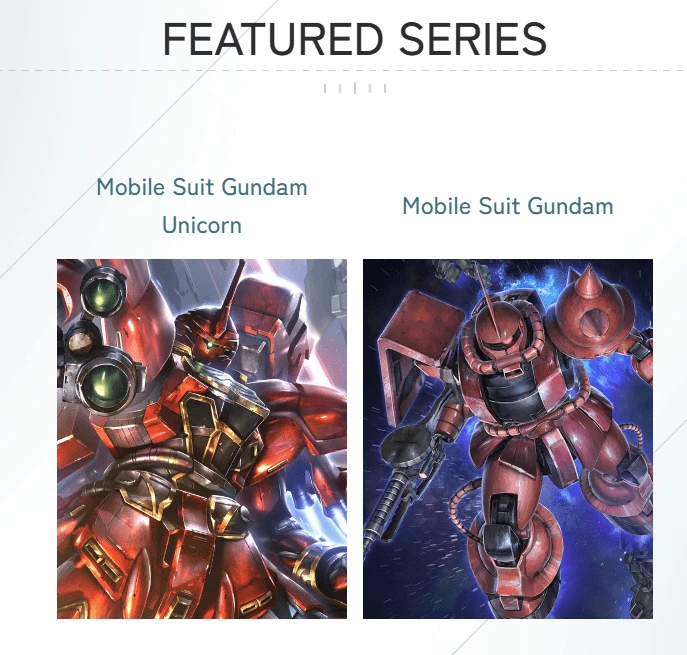 Zeon’s Rush [ST03A] An aggressive Red and Green deck with Zeon and Neo-Zeon characters from Mobile Suit Gundam and Gundam Unicorn. Featuring Full Frontal/Sinanju and Char Aznable/Char’s Zaku II.