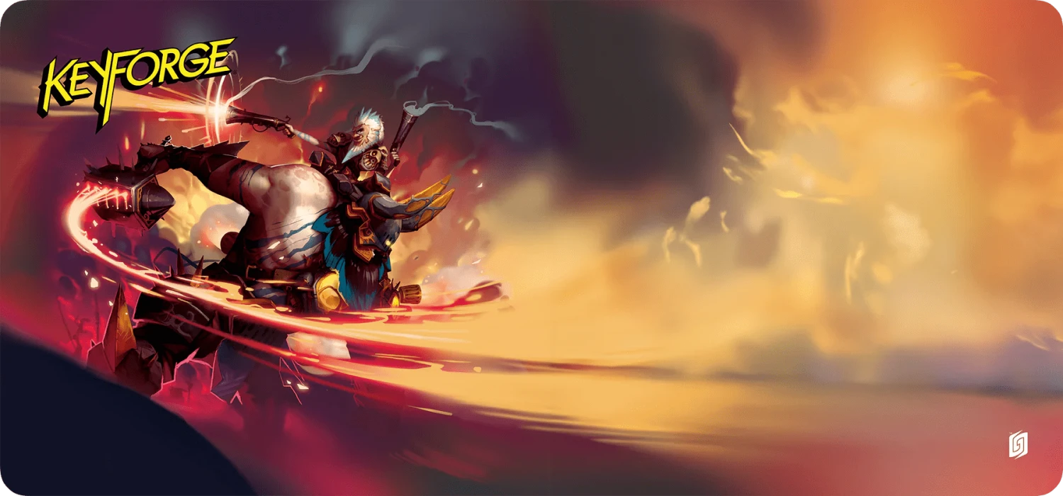 Upgrade your gameplay surface with your favorite design from our new collection of colorful 14″ x 30″ playmats featuring artwork from KeyForge: Γmber Skies.