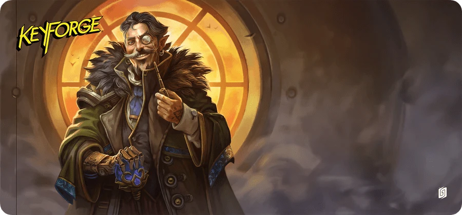 Upgrade your gameplay surface with your favorite design from our new collection of colorful 14″ x 30″ playmats featuring artwork from KeyForge: Æmber Skies.